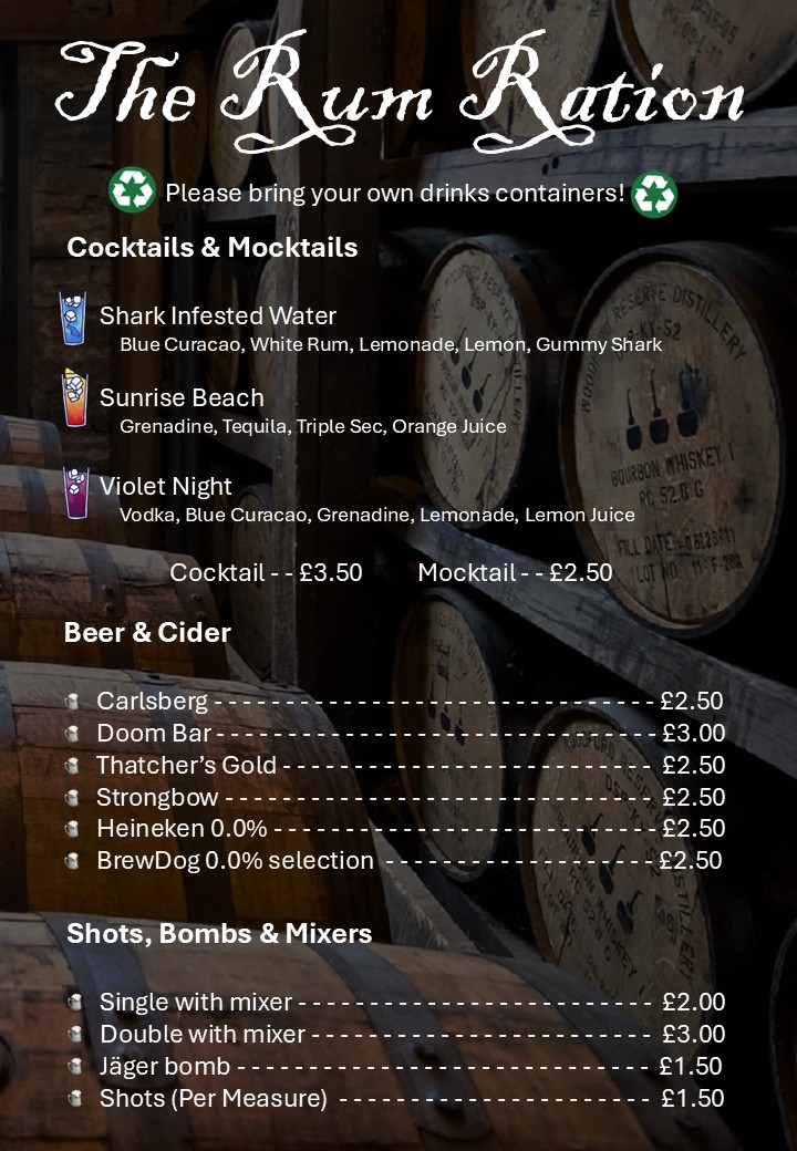 A bar serving interesting sea and boat themed cocktails will be open and serving drinks on the Friday and Saturday evenings